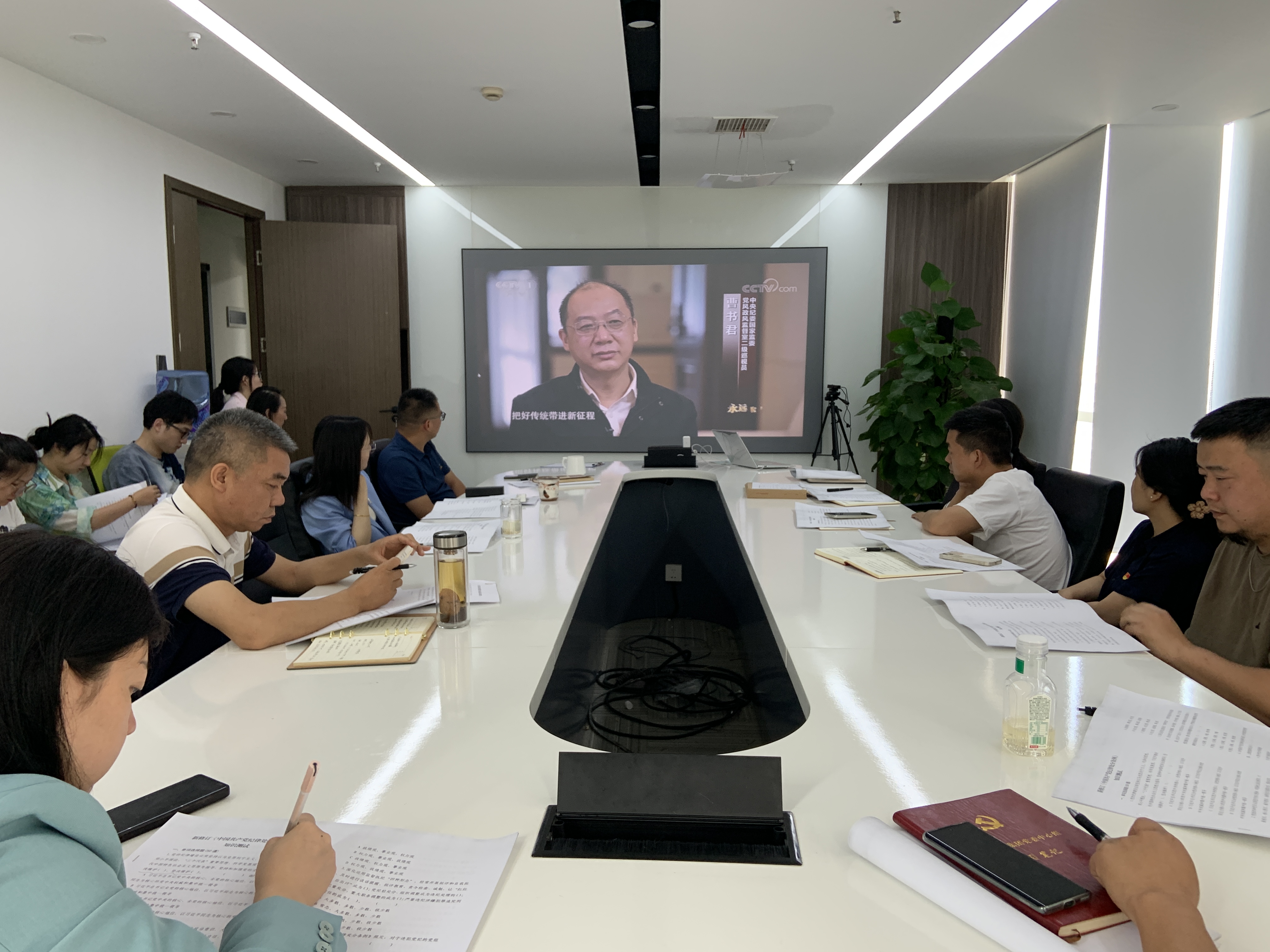 參會人員集中觀看《永遠吹沖鋒號》紀錄片,通過文化和旅游部原黨組副書記、副部長李金早案,為全體黨員干部敲響了警鐘,引發(fā)了極強的心靈觸動。通過警示教育,黨員同志紛紛表示,一定要堅持把黨的政治建設擺在首位,嚴明政治紀律和政治規(guī)矩,切實增強“四個意識”、堅定“四個自信”、做到“兩個維護”,不斷筑牢拒腐防變的思想防線,始終以優(yōu)良的紀律作風和昂揚的精神狀態(tài)推動數(shù)旅集團高質量發(fā)展。