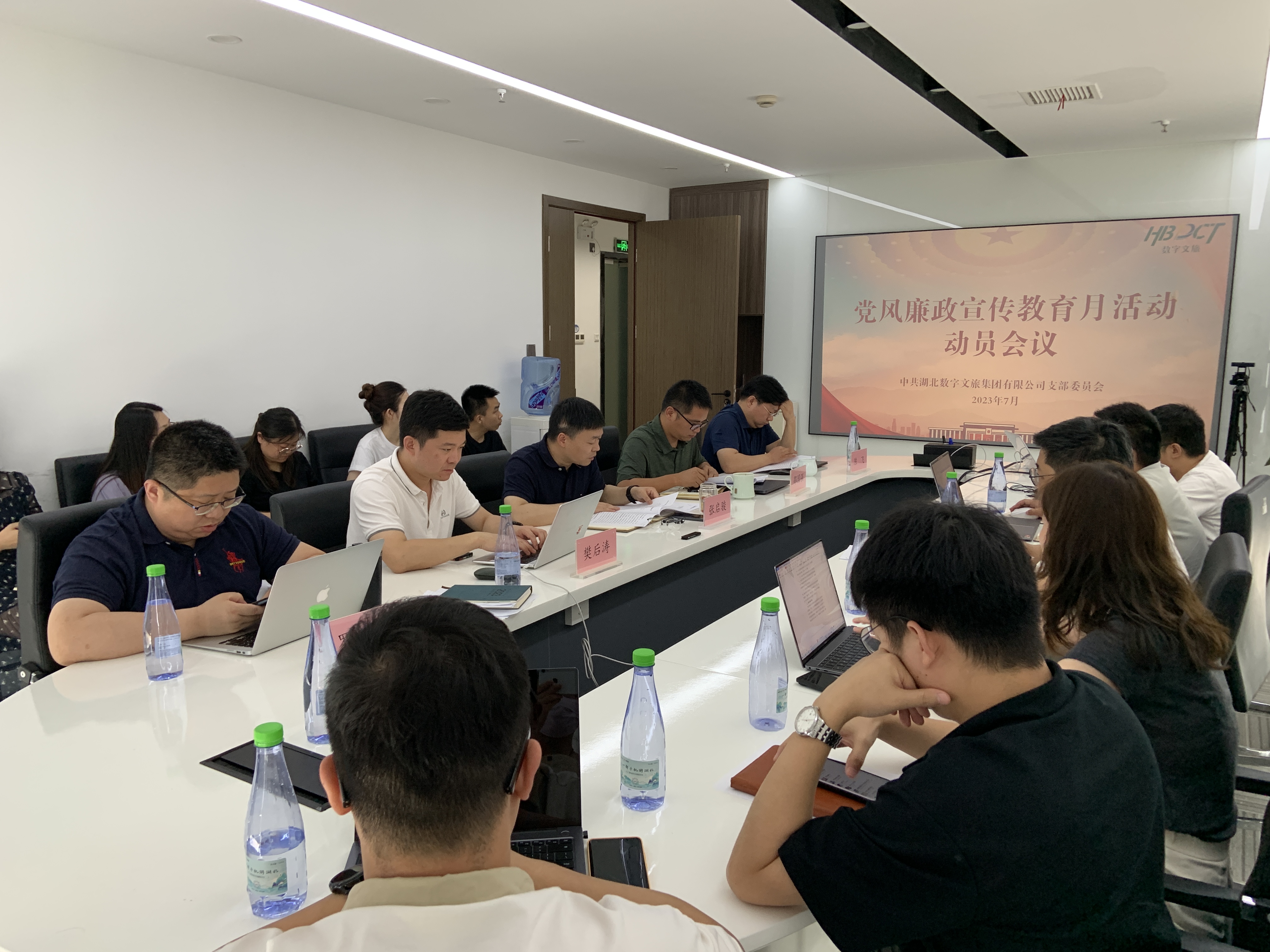 會(huì)議傳達(dá)湖北文旅集團(tuán)宣教月活動(dòng)方案,支部紀(jì)檢委員邵國(guó)強(qiáng)安排部署開展宣教月活動(dòng)的重點(diǎn)工作并宣讀《家庭助廉倡議書》,支部書記張啟駿對(duì)宣教月活動(dòng)動(dòng)員發(fā)言。